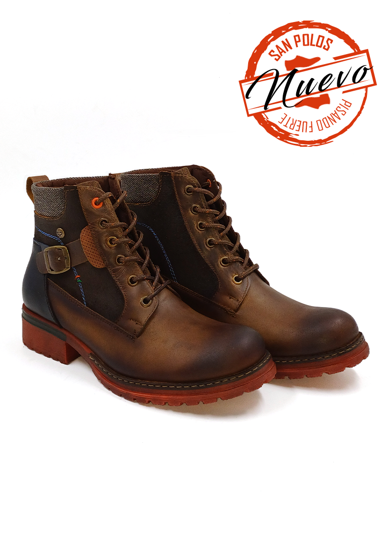 Descubre la combinación perfecta de estilo y comodidad con las botas de cuero para mujer de San Polos. Su diseño casual en color coñac con un elegante efecto repujado las convierte en el complemento ideal para cualquier look.