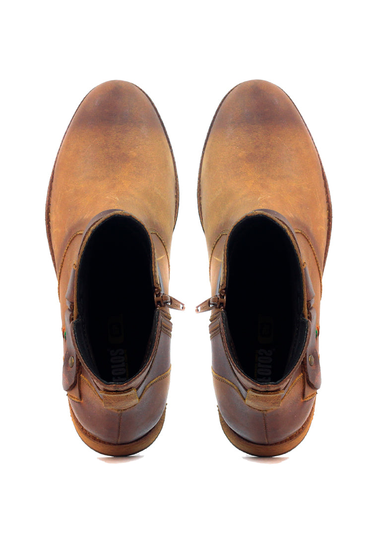 Descubre la combinación perfecta de estilo y comodidad con nuestras botas casuales para mujer. Elaboradas a mano en fino cuero color miel, estas botas son tu aliado ideal para el día a día y la oficina, gracias a su diseño elegante y su suela de madera que garantiza durabilidad.